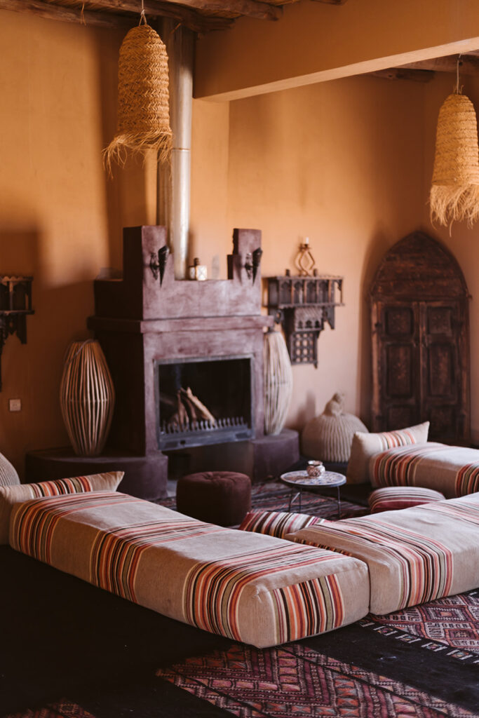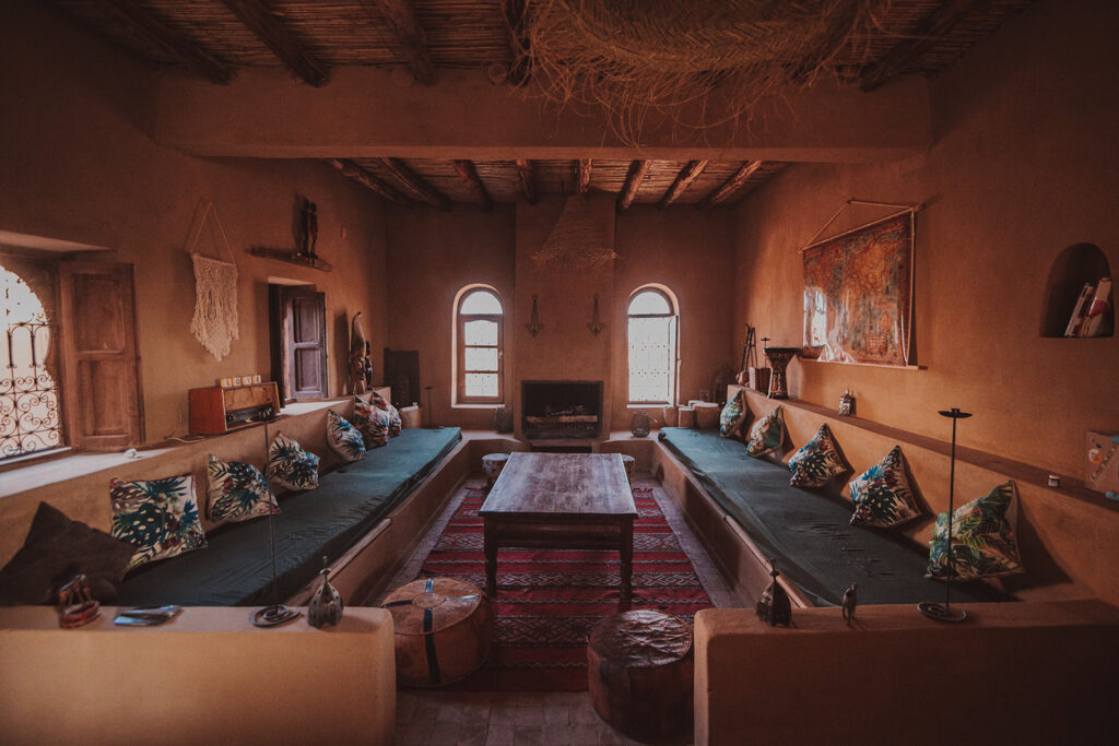El encanto de lo auténtico: interiores que reflejan la riqueza cultural y la hospitalidad del Sahara.